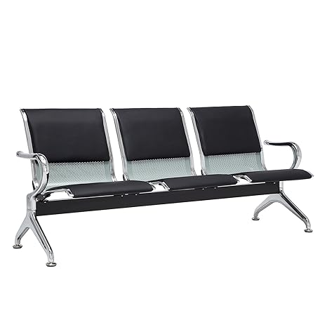 Sliverylake Office Chair Guest Reception Chairs Waiting Room Chairs Salon Barber Bank Hall Room Conference Airport With Black Leather Cushion 3 Seat