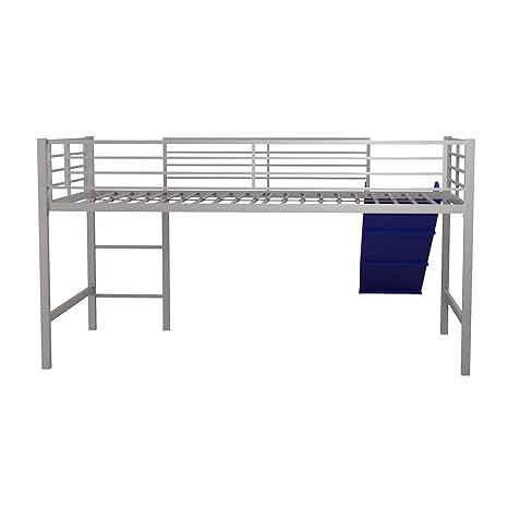 Dhp Junior Twin Metal Loft Bed With Slide Multifunctional Design Silver With Blue Slide