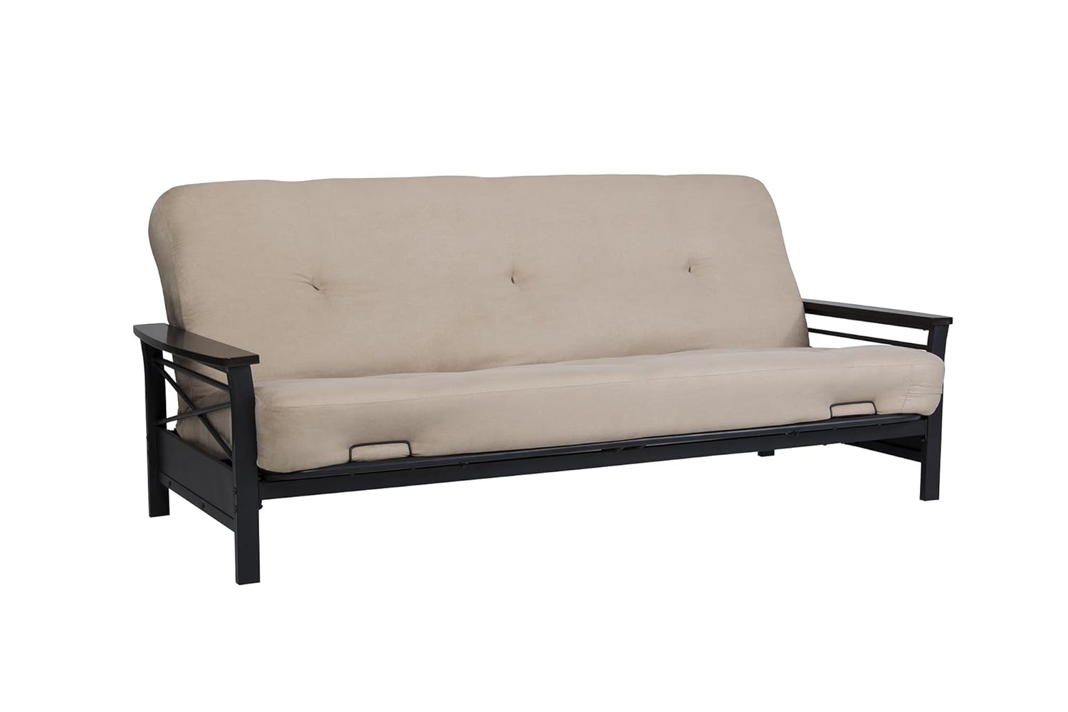 Dhp Nadine Metal Futon Frame With Espresso Wood Armrests Full Size Mattress Not Included
