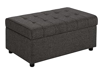 Dhp Emily Rectangular Storage Ottoman Modern Look With Tufted Design Lightweight Grey Linen