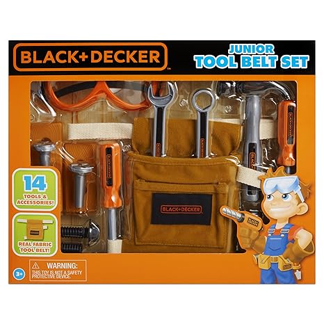 Tuck it all away in the included kids tool belt complete with the black and decker logo. Blackdecker has a full range of fun tool toys for young workbenches. Blackdecker junior kids tool set mega tool set with 42 tools accessories.