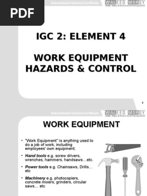 Igc2 Element 4 Work Equipment Occupational Safety And