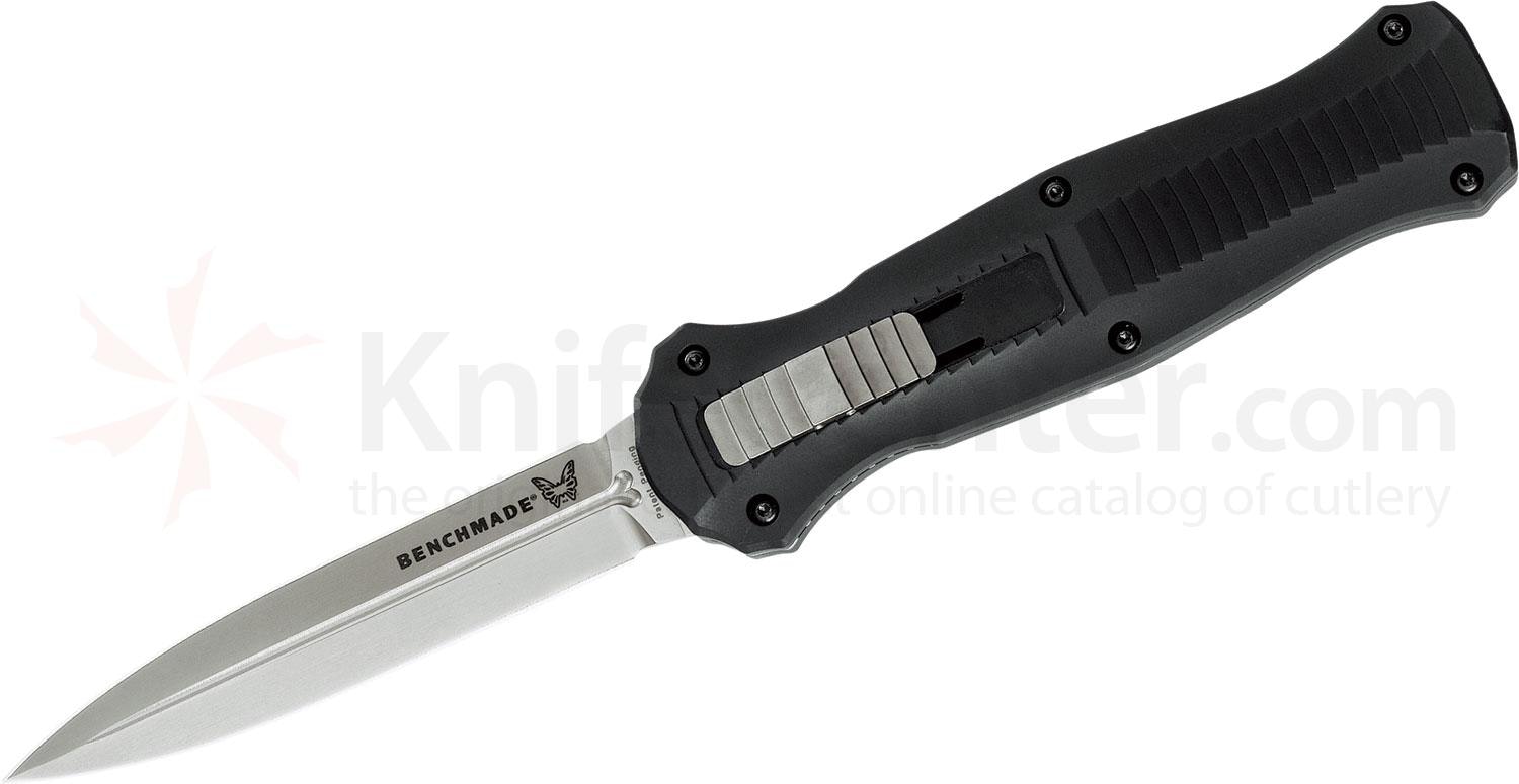 Benchmade Pagan Otf Auto Plain Double Edge Satin Silver Blade Black Anodized