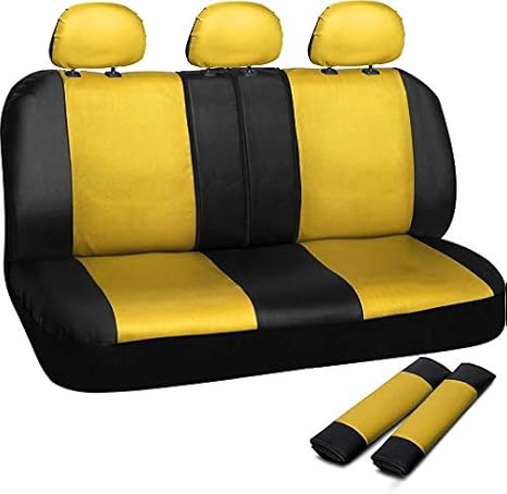 Motorup America Leather Bench Seat Cover Set Fits Select Vehicles Car Truck Van Suv Yellow Black