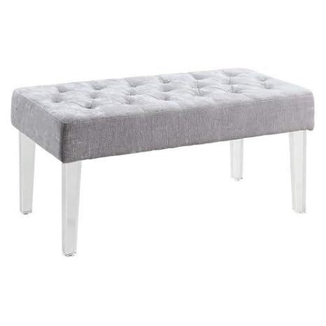 Best Master Furniture Suede Upholstered Tufted Bench With Acrylic Legs Grey