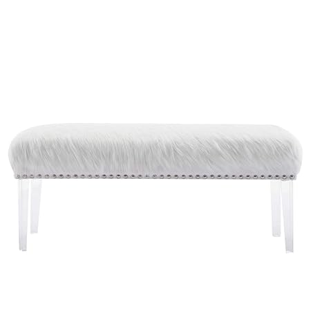 Andeworld White Faux Fur Bench With Acrylic Legs And Nailhead Upholstered Vanity Bench Ottomans Footstools