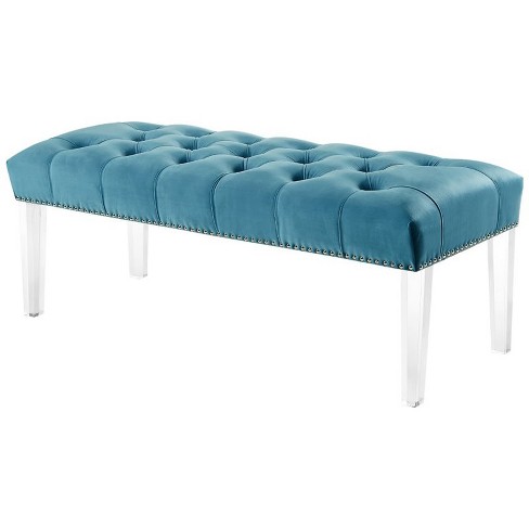 Glitzhome 44 88 L Velvet Tufted Upholstered Bench With Acrylic Legs Teal