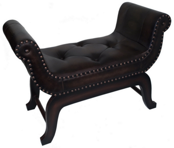 Tufted Brown Faux Leather Upholstered Bench Seat With Rolled Arms Silhouette