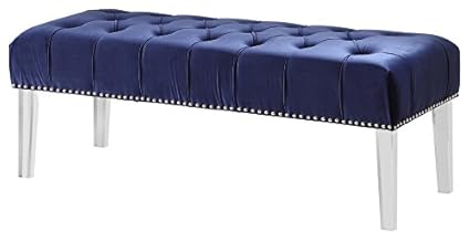 Tov Furniture The Stella Collection Modern Velvet Upholstered Wood Accent Bench With Lucite Legs Navy