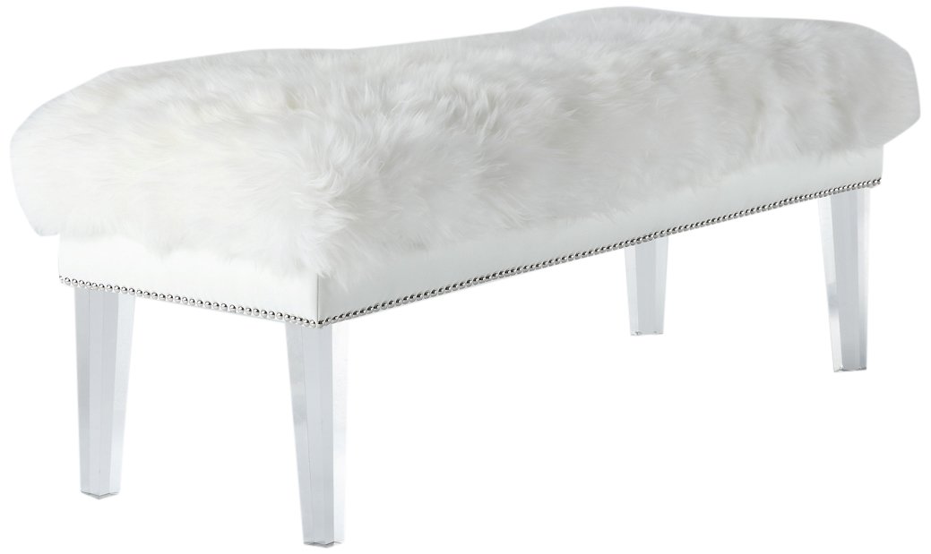 Tov Furniture The Luxe Collection Modern Sheep Skin Upholstered Wood Accent Bench With Lucite Legs White