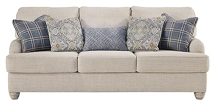 Benchcraft Traemore Casual Upholstered Sofa With Recessed Arms Linen