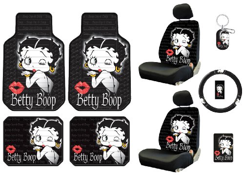 A 7 Piece Betty Boop Gift Set 2 Lowback Seat Covers 2 Front Floor Mats 2 Rear Floor Mats And 1 Steering Wheel Cover Betty Boop
